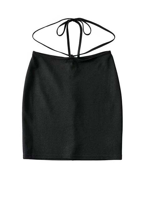 Tie Waist Mini Black Skirt
